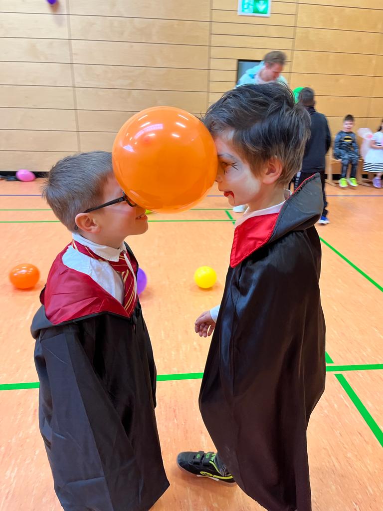 Die Kinder aller 1. und 2. Klassen des Schulhauses Surheim feierten am unsinnigen Donnerstag gemeinsam eine kunterbunte Faschingsfeier. In vielen lustigen und kreativen Kostümen spielten sie gemeinsam Luftballontanz, Reise nach Jerusalem, Mumienwickeln und vieles anderes. Auch eine Polonäse durfte nicht fehlen. Als Abwechslung dazu konnten sie in der Turnhalle sich auf einem vielfältigen Turnparcour austoben. Natürlich durften kleien Naschereien nicht fehlen. Insgesamt waren alle Kinder am Ende des Schultages glücklich und hatten viel Spaß!