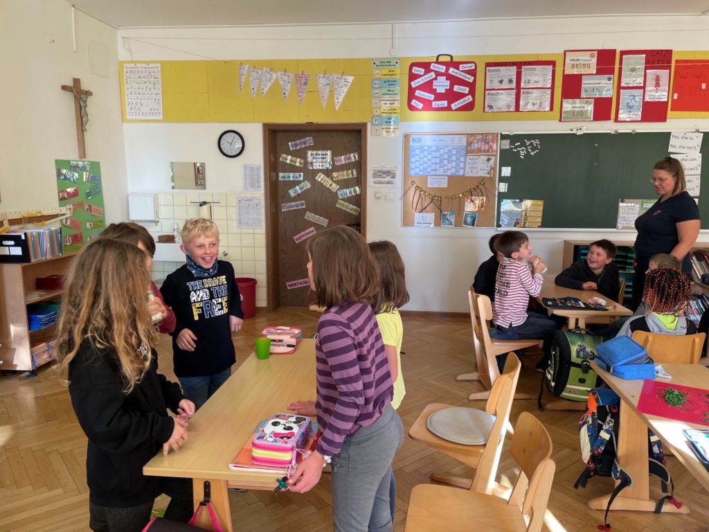 Die Klasse 4b beschäftigt sich derzeit ausführlich mit dem Thema Milch. Passend dazu waren die Kräfte der Kinder verlangt. Schlagsahne wurde im HSU Unterricht so lange und stark geschüttelt, bis Butter entstand. Passend dazu gab es frischen Schnittlauch aus dem Schulgarten. Zum Schluss durfte jeder ein leckeres Brot mit selbst gemachten Schnittlauch genießen.