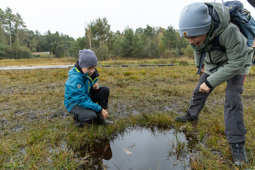 Ausgestattet mit Becherlupe und Fernglas sahen die Kinder viele verschiedene Wasservögel, Insekten, Spinnen, Pilze und Moorpflanzen.