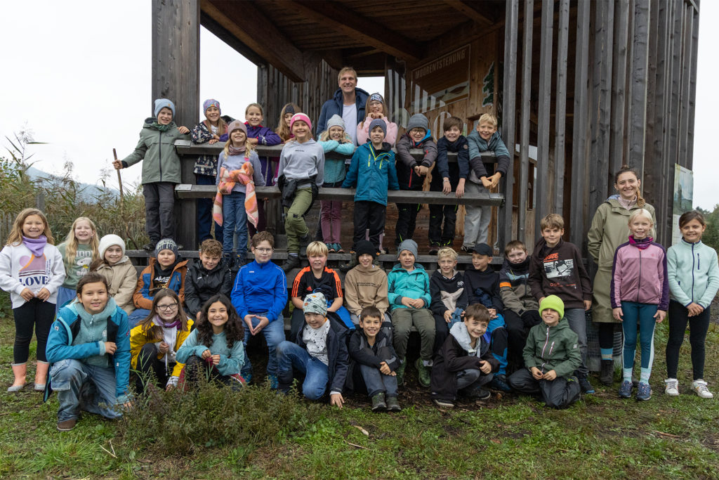 Am 09. Oktober unternahmen die Klassen 4a und 4d gemeinsam mit ihren Lehrkräften Frau Kroher und Herrn Lambertz einen spannenden Ausflug ins Ainringer Moos. Bei herbstlichen Wetter erkundeten die Schülerinnen und Schüler die vielfältige Natur.